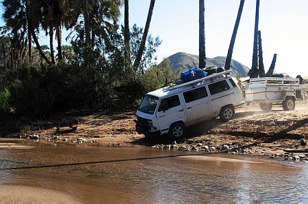 Nach der Landung erfolgt der Transfer über eine Teerstraße bis zum Ort Outjo. Übernachtung im Buschfeld Camp, erstmaliger Zeltaufbau. Weiterfahrt bis zu den Ruacana Wasserfällen an der Grenze zu Angola. Fahrt entlang des Kunene bis in das schöne Camp der „Kunene River Lodge". Weiterfahrt bis Swartbooisdrift, Besichtigung des Dorsland Trekker Denkmales.