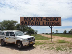 Follow the C33 from Otjiwarongo to Kalkfeld. In Kalkfeld turn left, follow the only road that leads over the railway, and follow the Mount Etjo Safari Lodge signs. Follow road D 2414 for approximately 17km. Turn left onto D 2483, the turn-off is marked clearly by a Mount Etjo Safari Lodge signboard. Follow D 2483 for approximately 15 km, Mount Etjo is to your left, the entrance of the gate is sign boarded Mount Etjo Safari Lodge.